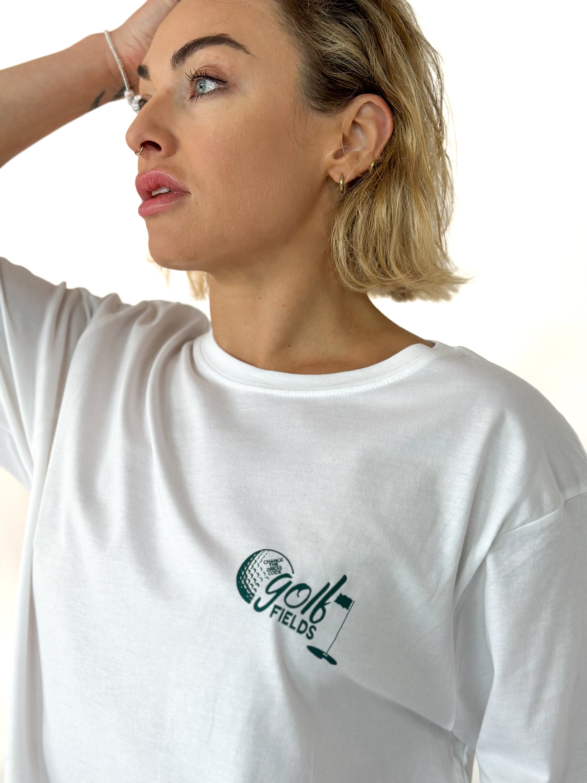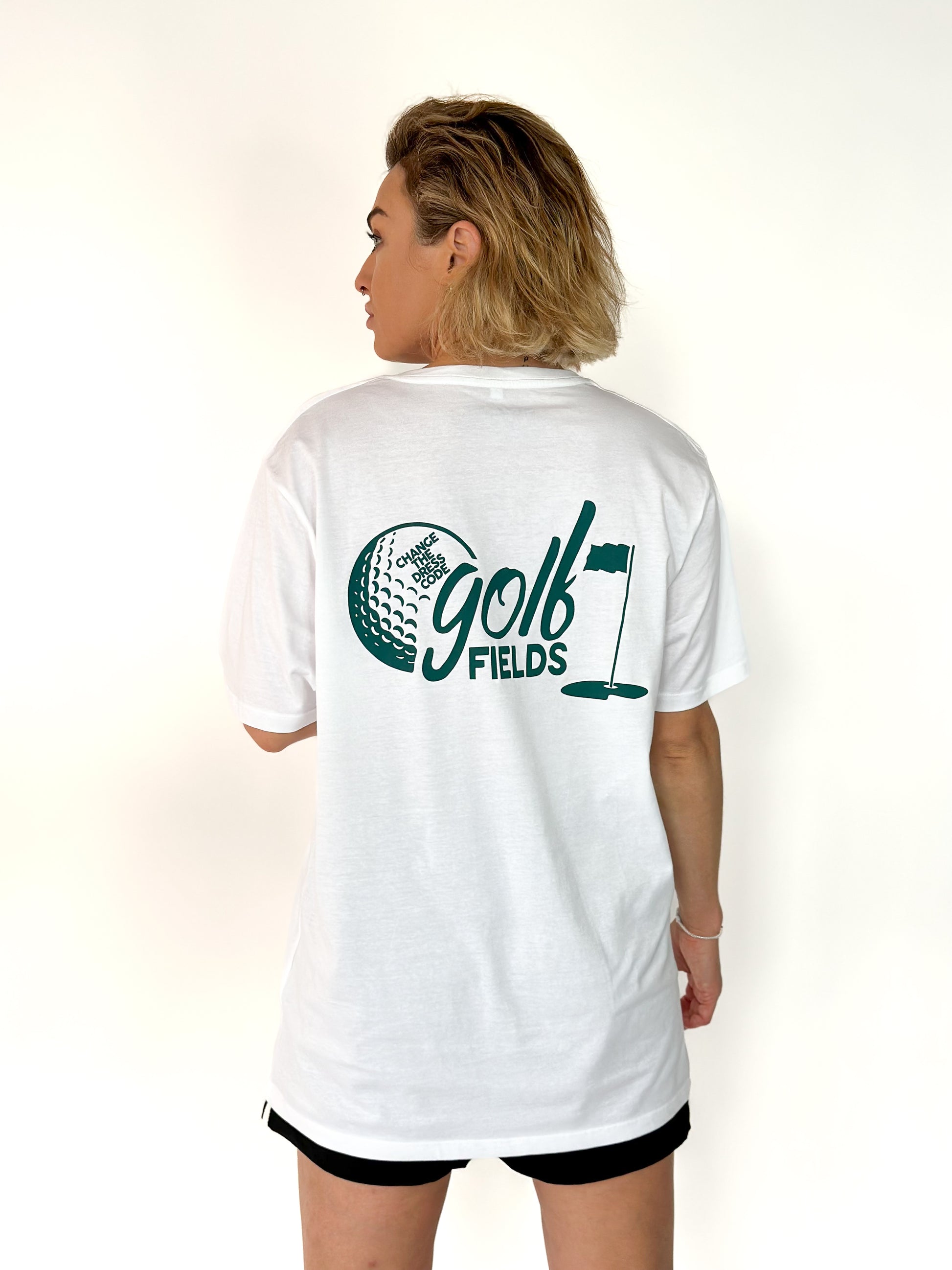 Fabriqué entièrement en coton biologique, notre t-shirt « Golf » a une coupe classique et régulière et est superbe avec un imprimé vert foncé. Avec des motifs imprimés britanniques sur le devant et le dos. Articles de club house parfaits.